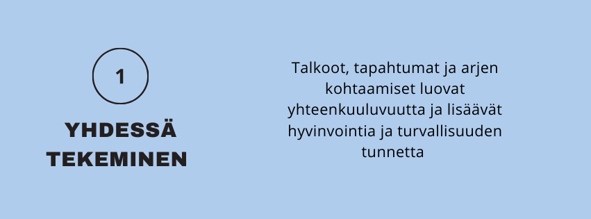 Kehittämistyön perusteella Ruuhijärven yhteisöllisyys rakentuu ennen kaikkea yhdessä tekemisestä ja osallistumisen mahdollisuuksista. Kyläläiset toivovat aktiivista kylää, jossa järjestetään matalan kynnyksen tapahtumia, yhteisiä juhlia ja arjen kohtaamisia. Yhteisöllisyys syntyy usein epämuodollisesta yhdessäolosta – siitä, että mukaan voi tulla omien voimavarojen mukaan ja ilman suuria vaatimuksia.