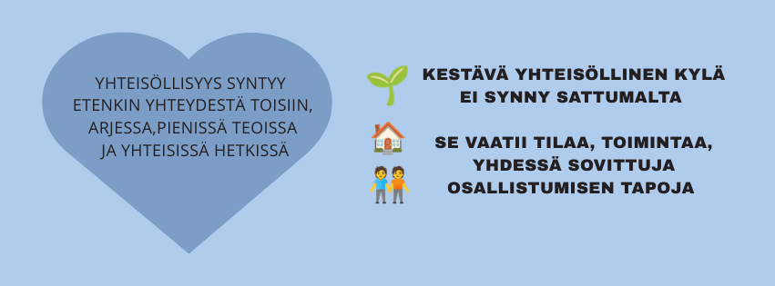 Kun mukana ovat ihmiset, toiminta, tilat ja luonto, syntyy kestävä ja elinvoimainen kylä myös tuleville sukupolville. Kehittämistyö oli osa opinnäytetyötä, joka toteutettiin sosionomin (YAMK) tutkinnossa, ekososiaalinen työ ja globaaliosaamisen toteutuksessa. Yhteistyökumppanina toimi Ruuhijärven nuorisoseura ry.
